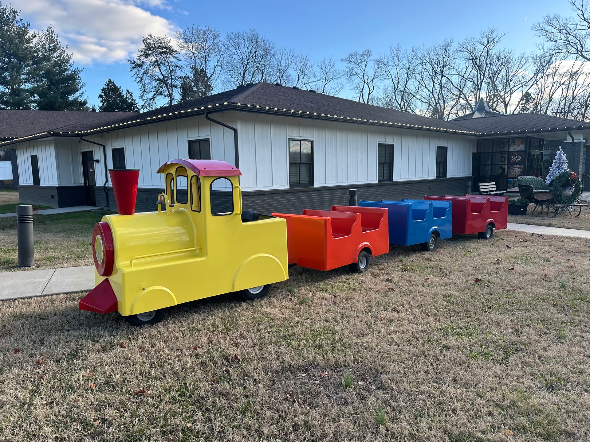 Chug along to a world of fun with our Mini Train Rides, now available for rental in Nashville, TN! Our trackless and electric train rides are a hit among kids and adults, offering a delightful experience for all ages. Perfect for community events, birthday parties, corporate gatherings, or any occasion that calls for a unique and memorable attraction. These charming trains can navigate various terrains, from grassy fields to gravel paths and concrete surfaces, making them a versatile choice for any event location.